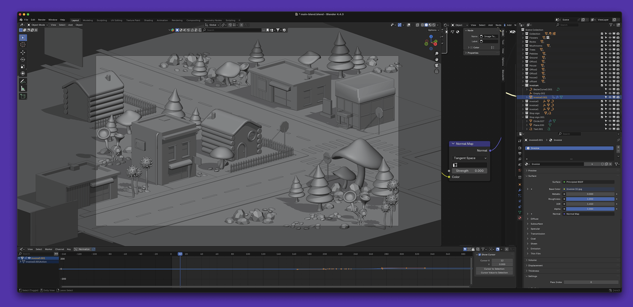 The fun begins. Part of the brand story, I explored a couple of ideas that took me into a 3D environment. I came up with the idea of a scene with multiples buildings and crossroads, and instead of cars going from one place to another, it would an invoice. With the added car-like animation added to each invoice as they hit the traffic lights, it really brings it to life.